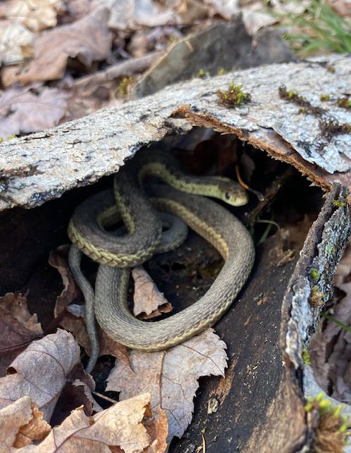 As I moved a fallen branch from the trail this weekend, I disturbed my first snake of the season. My reaction was “Wow! Hi, snake! Happy spring!” I feel blessed to experience a true sense of wonder and appreciation in the presence of these graceful creatures, with their unblinking eyes and flickering tongues, rather than recoiling.